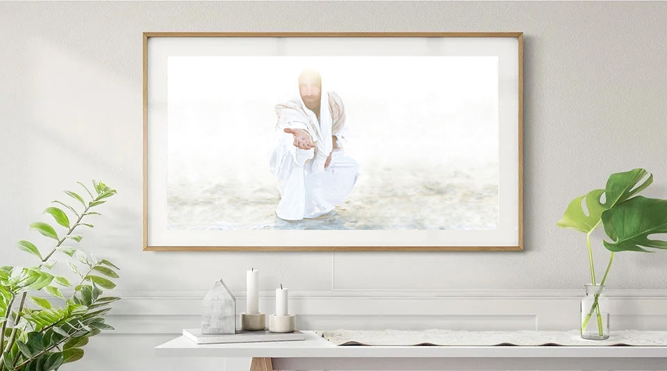 Some people don't like having a TV above the fireplace because it feels like they're "worshipping" the TV. Well I've got a fix for that! Grab a few of your favorite prints and upload them to your Frame TV and make Him your centerpiece!