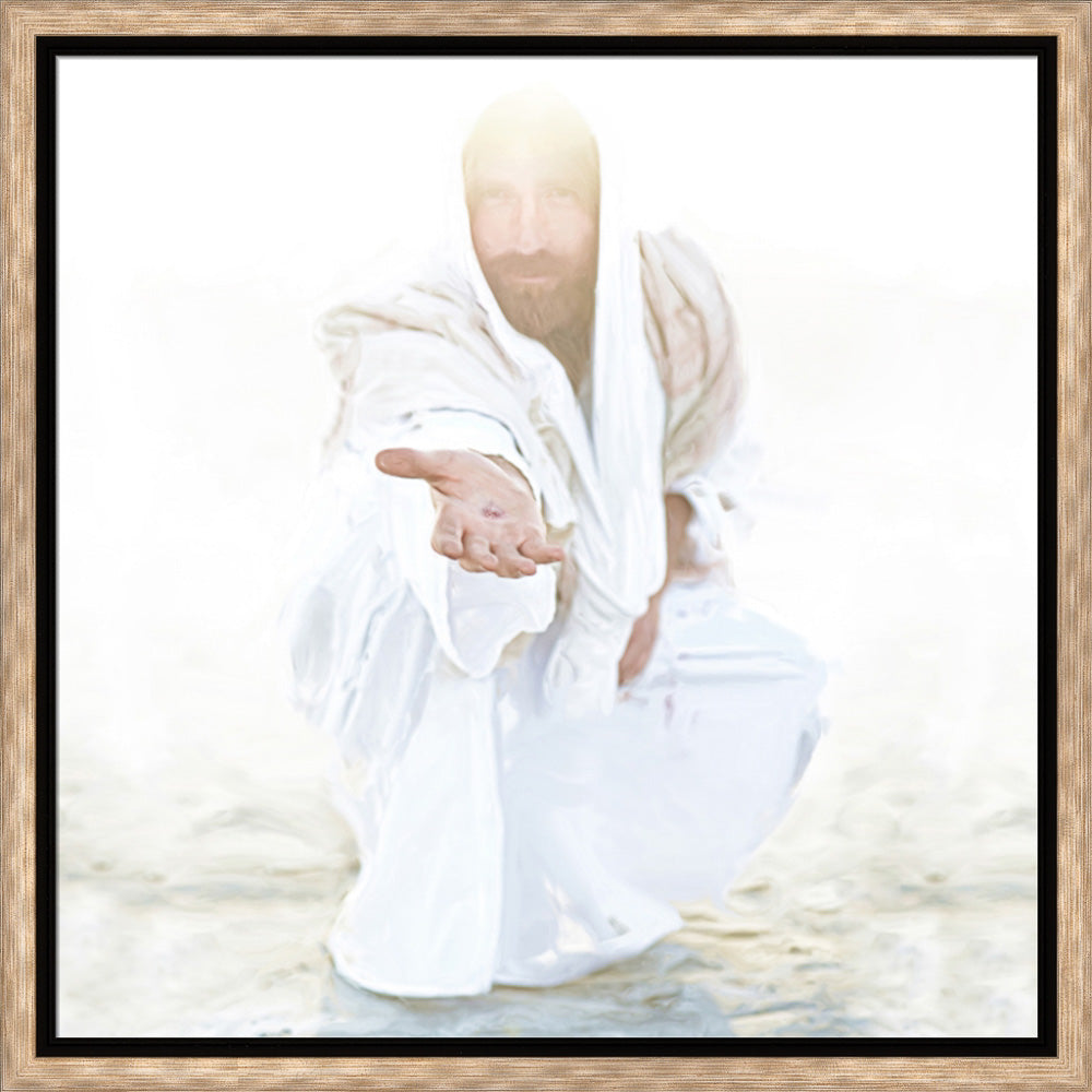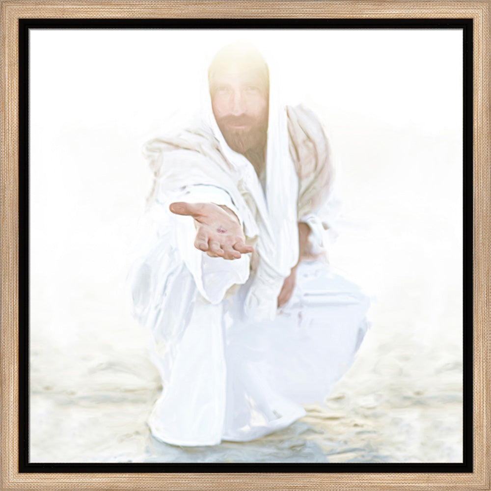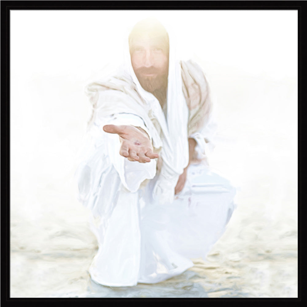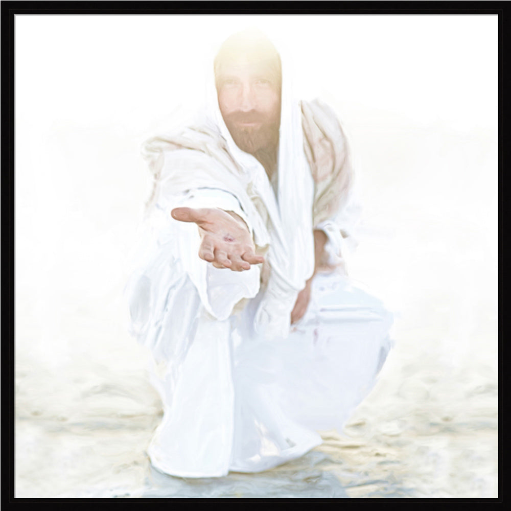 A few years before creating this painting, I experienced a betrayal that led me to construct an impenetrable emotional cage around myself, seeking safety from further harm. Unexpectedly, I began to gradually vanish, retreating from human connection, love, and even my faith in God. After seeking help, I started glimpsing rays of light and feeling the reassurance of God’s promises. One particular day, I was granted a vision—a depiction of myself, on the ground with my back pressed against the wall, surrounded by darkness and anguish. I lifted my gaze and noticed a hand extending through a door in the cage—it was the hand of Jesus Christ. I understood that Jesus had traversed the arduous path I had taken, searching for me in order to guide me out. Without hesitation, I grasped His hand, and together we retraced the convoluted route until we emerged into light, hope, and life. Jesus had come—for me—and I realized He had been by my side throughout my journey.