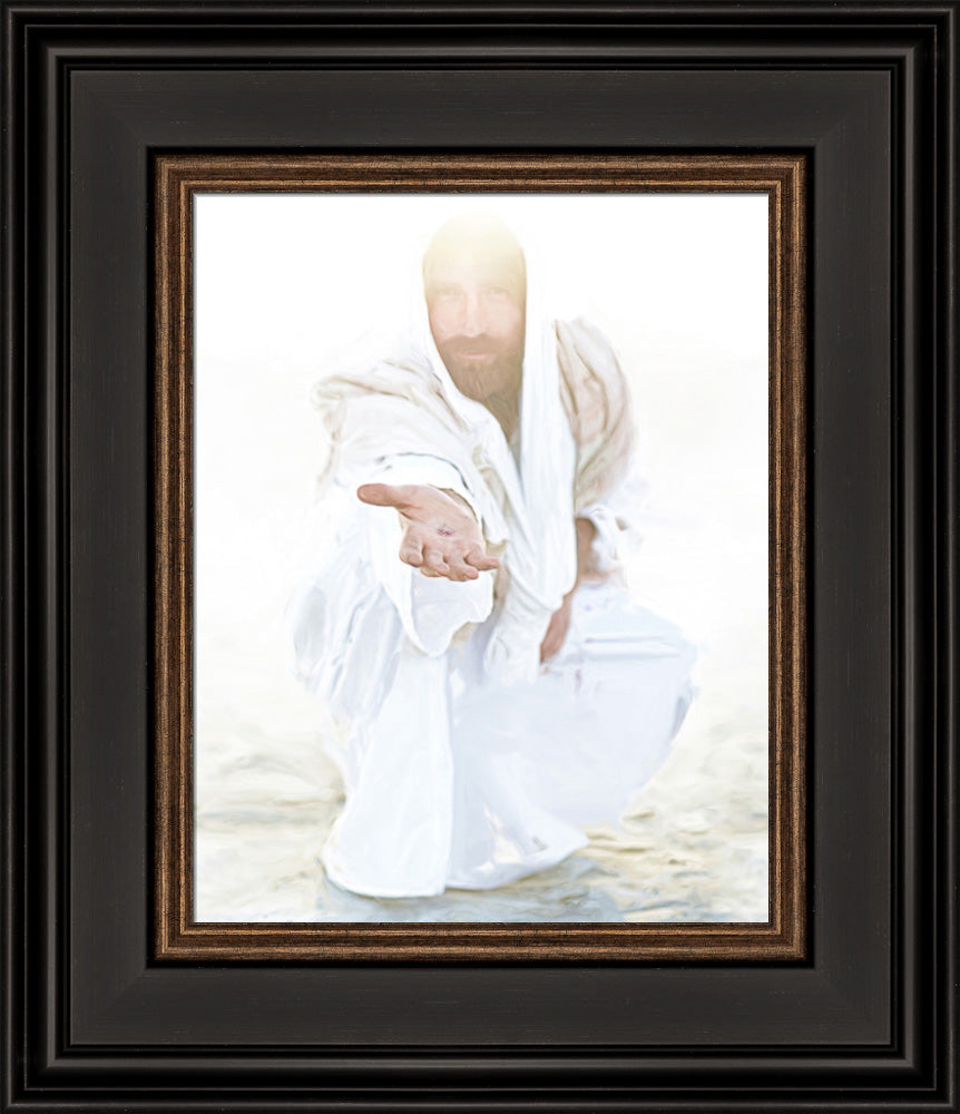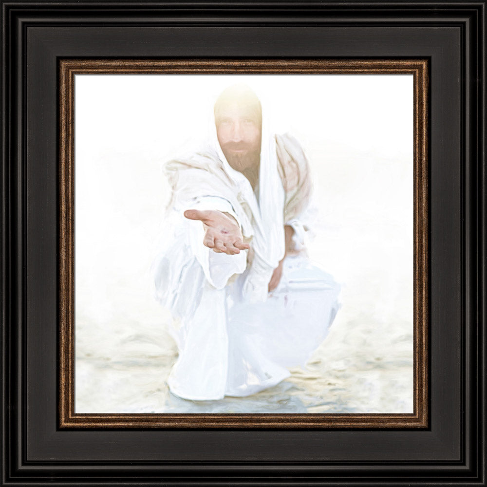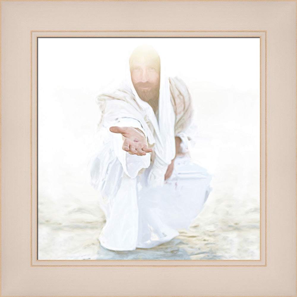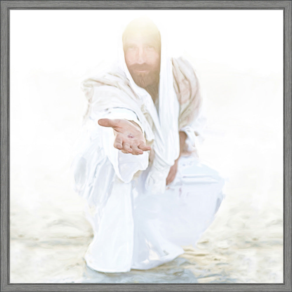 A few years before creating this painting, I experienced a betrayal that led me to construct an impenetrable emotional cage around myself, seeking safety from further harm. Unexpectedly, I began to gradually vanish, retreating from human connection, love, and even my faith in God. After seeking help, I started glimpsing rays of light and feeling the reassurance of God’s promises. One particular day, I was granted a vision—a depiction of myself, on the ground with my back pressed against the wall, surrounded by darkness and anguish. I lifted my gaze and noticed a hand extending through a door in the cage—it was the hand of Jesus Christ. I understood that Jesus had traversed the arduous path I had taken, searching for me in order to guide me out. Without hesitation, I grasped His hand, and together we retraced the convoluted route until we emerged into light, hope, and life. Jesus had come—for me—and I realized He had been by my side throughout my journey.