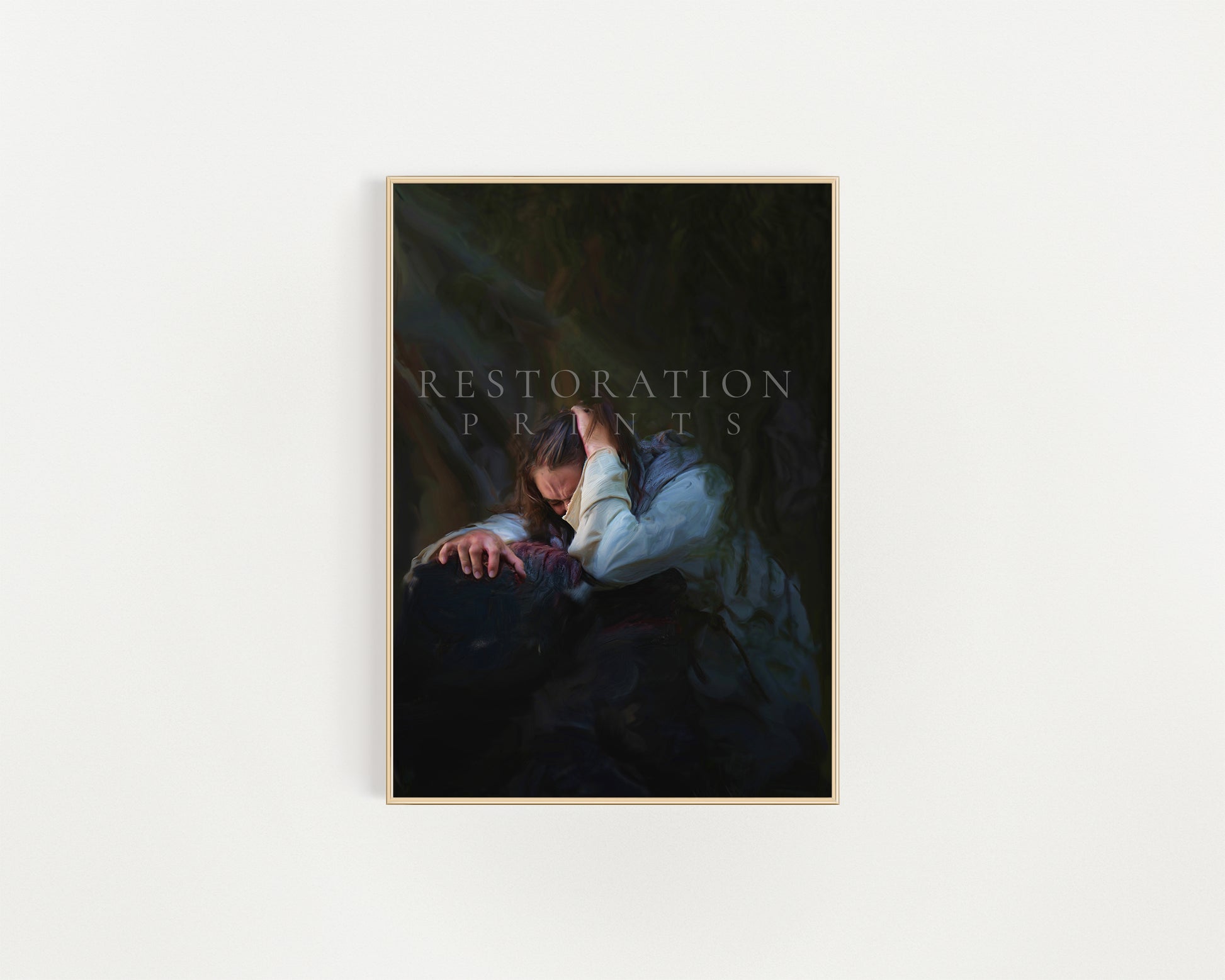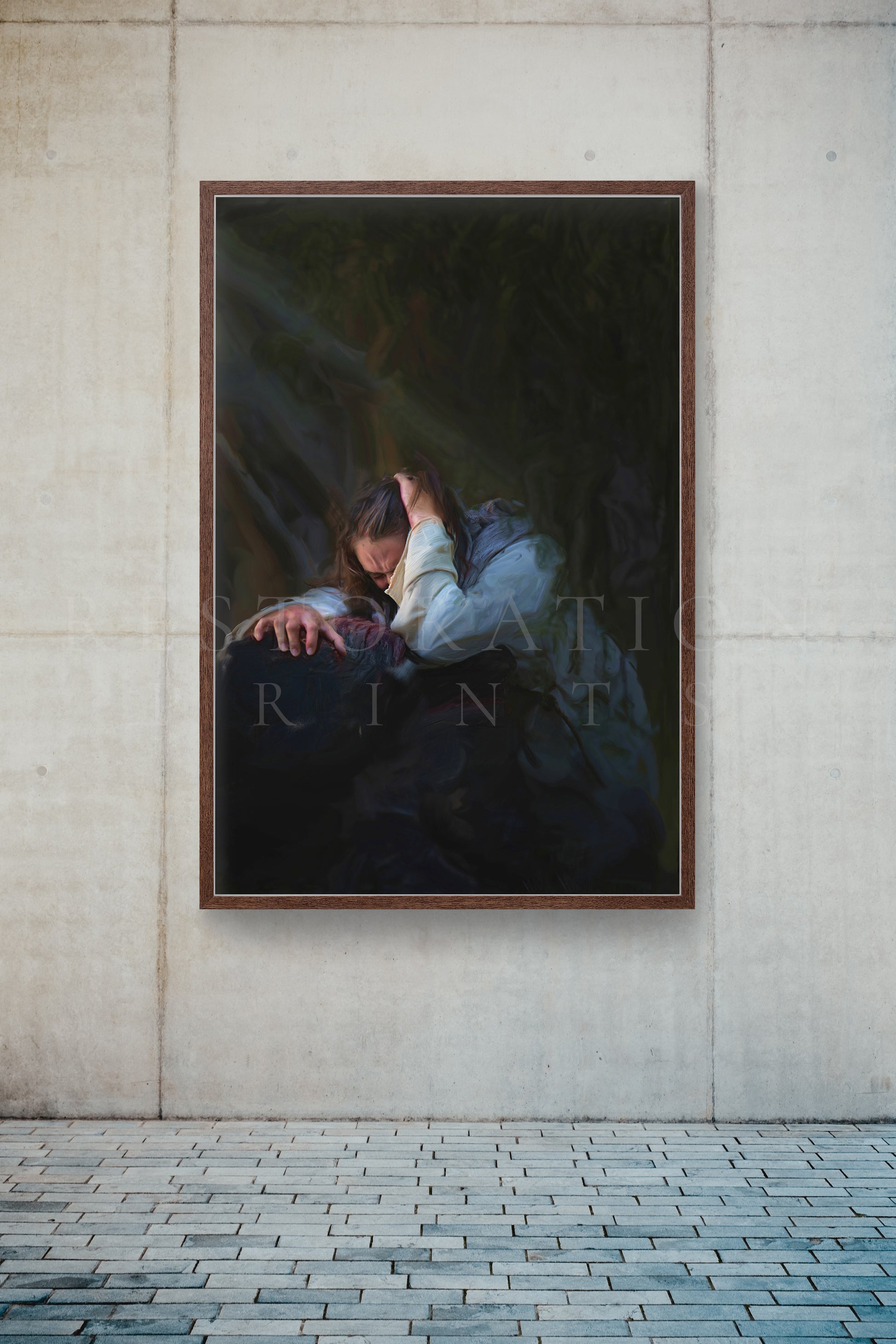 I am 4 of 8 children. Of the 8 there is one son. My brother has been through some rough times including serving in the Afghan war. I asked him to model for this piece because of his experiences with the darkness of humanity. He did an amazing job - which is sad because it not only shows the suffering of my brother here on earth, but the sufferings of my brother Jesus Christ.