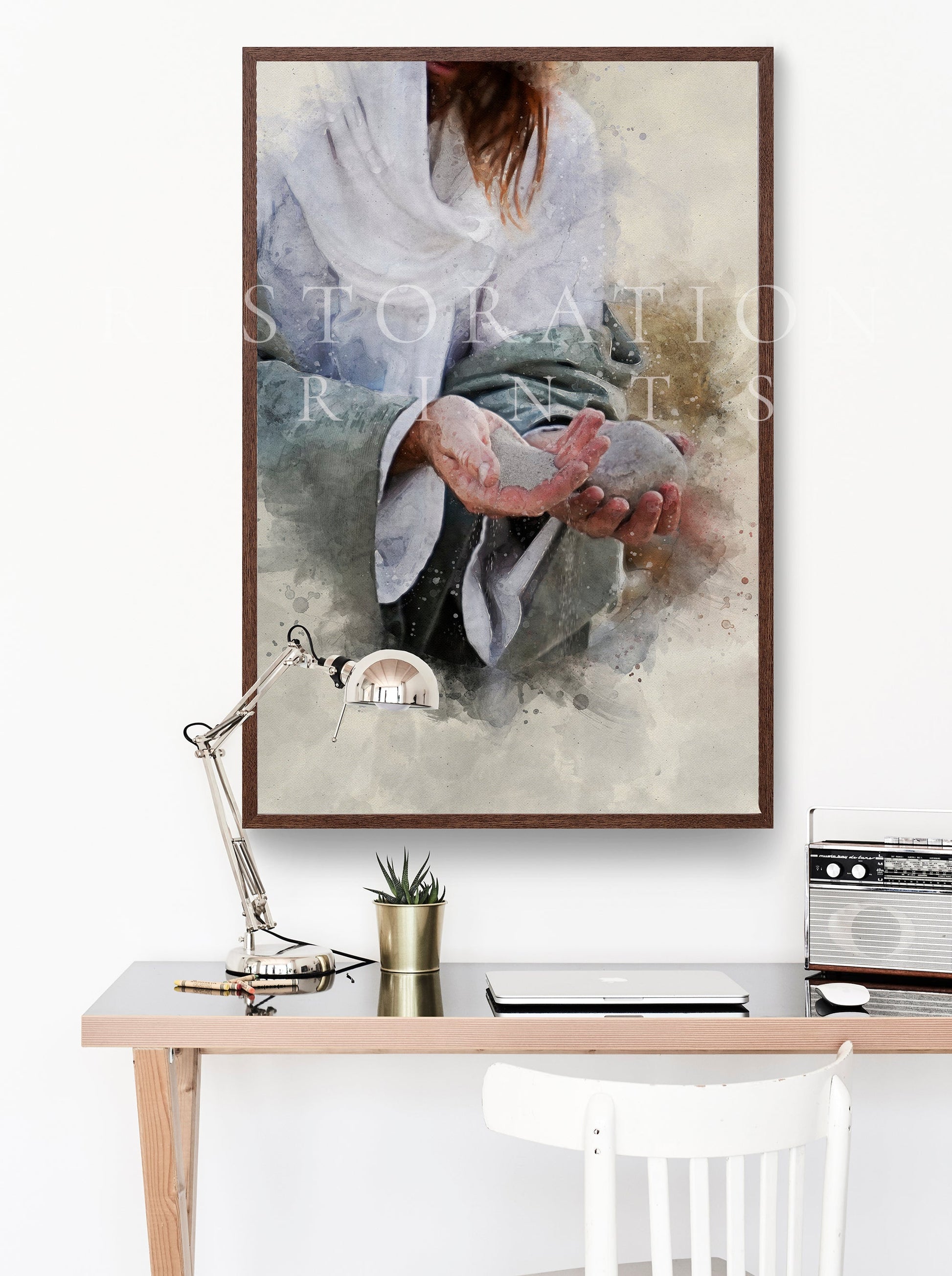 The frames and furniture you see in the images are renderings, which means they are just digital props to help display my art. I recommend looking at Hobby Lobby as I've had a good experience with them and their prices are reasonable. They can also help you with other ways to display your prints (such as dry mounting on foamcore).
