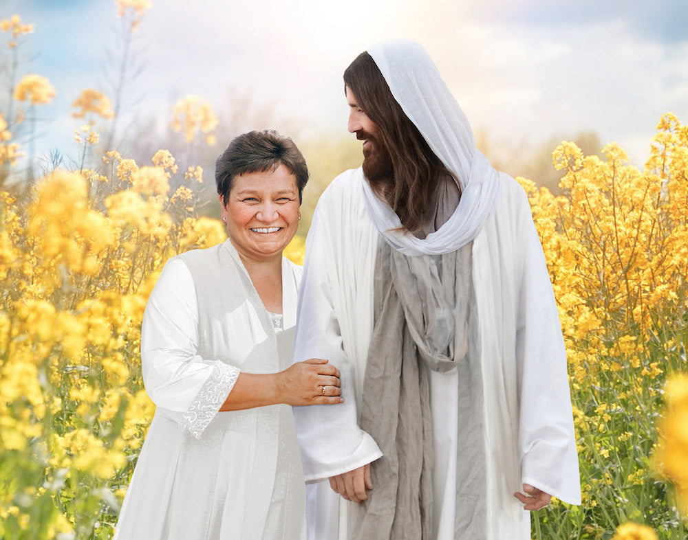I will incorporate a picture of your loved one into a scene with the Savior and create a custom, one-of-a-kind piece of art.